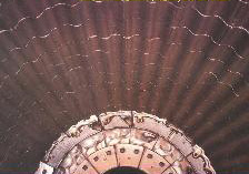 C. 火电厂煤磨衬板-----我们推荐由公司研制并向全国推广的ZGCr5Mo双介质淬火钢或高铬合金钢,它具有淬火硬度高、韧性值高的特点,并具有理想的费效比,使用寿命可保证在6年(42000小时)以上,一般在8年左右,且维修量几乎为零。自1995年以来在全国电力行业中φ3800mm以下数百台磨机衬板的应用获得满意效果。如淮北发电厂组合衬板使用寿命长达14年,基本无维修。通过独特的热处理工艺(双介质淬火),整块衬板硬度差不超过HRc1,硬度非常均匀。