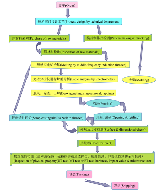 我们的铸造厂面积约30000平方米。生产能力3万吨/年,我们拥有1.2吨、1.5吨、2吨、5吨、12吨和15吨的中频感应电炉;10 3吨、10吨、30吨的热处理炉。